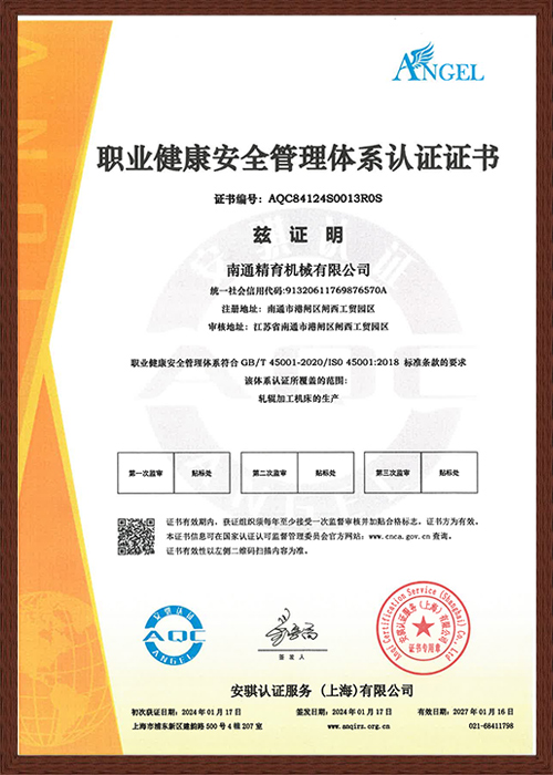 職(zhí)業健康(kāng)安全管(guan)理體系(xì)認證證(zheng)書
