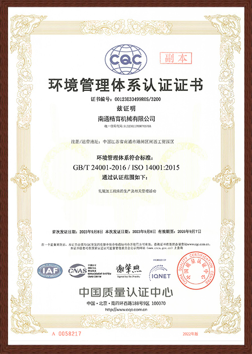 環境管(guǎn)理體系(xi)認證證(zheng)書